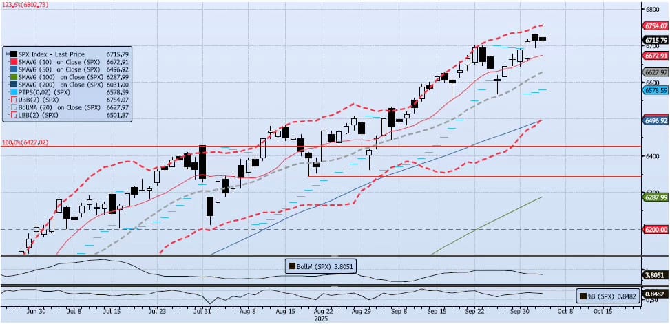 The SPX index was essentially flat in the day Friday, hitting a new all-time high (ref 6750) and closing at 6715. To note, on a closing basis the current ACAP signal has returned 2.81%. Momentum and trend indicators held. My Spot VIX signal remains “neutral”. My VIX Term Structure signal remains “risk on”. The ACAP Momentum/Trend Model signal remains Positive. As I have continued to write, “Risk remains skewed to the upside.”