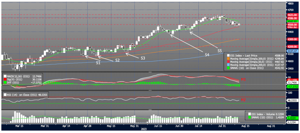 - 4500: Previous Resistance; 76.4% Retracement Level