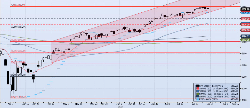 The SPX index lost 12bps on the session yesterday, closing at 6362. The 10dma (ref 6344) was broken on an intra-day basis as the index hit a low of 6336 but held for the close. The session overall was weak with a lower low and lower high versus the previous session. My momentum and trend indictors continue to struggle. The ACAP Momentum/Trend Model signal shifted back to Negative. There is obvious churn within the model, setting up for a powerful move off current levels. Risk is slightly skewed to the downside as the index’s inability to break out above 6400 remains an issue.
