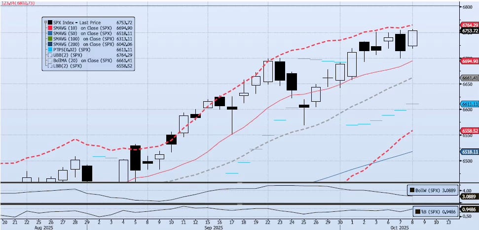 The SPX index gained 58bps during yesterday’s session hitting both a new all-time high (ref 6755) and all-time closing high (ref 6753). The index continues to grind higher as momentum and trend indicators remain steady. My Spot VIX signal remains “neutral”. My VIX Term Structure signal remains “risk on”. The ACAP Momentum/Trend Model signal remains Positive. Bottom line is I love to hate them, and I can give a long list of reasons why the index should not be at current levels. However, the ACAP process has been spot on with the current Positive signal deep into its 4th week and a gross return of +3.39%. Risk remains skewed to the upside. I fully expect the current move to test the next highlighted resistance level at 6802 in the near term.