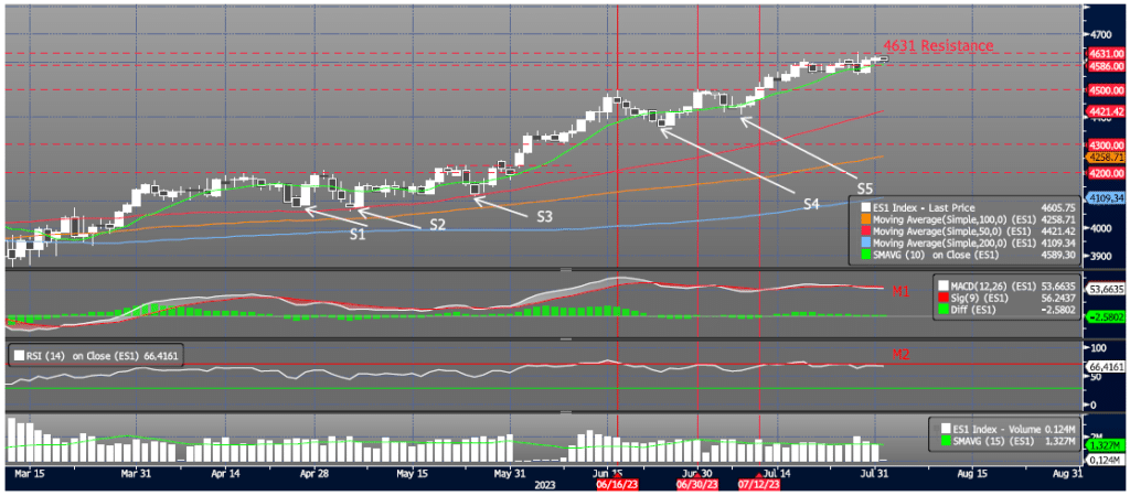 - 4500: Previous Resistance; 76.4% Retracement Level