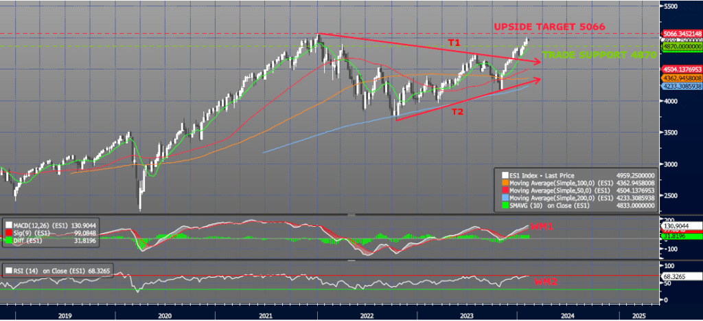 ES1 (SP500 Generic Front Month) - 2.6.24 *Momentum on the Daily chart remains positive but is narrow and compressing. Although this could be a leading indicator that price will not break out above 5000 and may be beginning to retrace, I am sticking to the Weekly chart for now and staying focused on strong momentum (WM1, WM2) with an upside target of 5066 still in place. This view will change if we see the index trade below near term support at the 10dma (ref 4934), trade support (ref 4870 see chart below) or the 10wma (ref 4832). A break below any of these levels with confirming breaks in momentum will shift my view from positive to negative. Until then I remain uncomfortably positive. Trading Support (Daily):