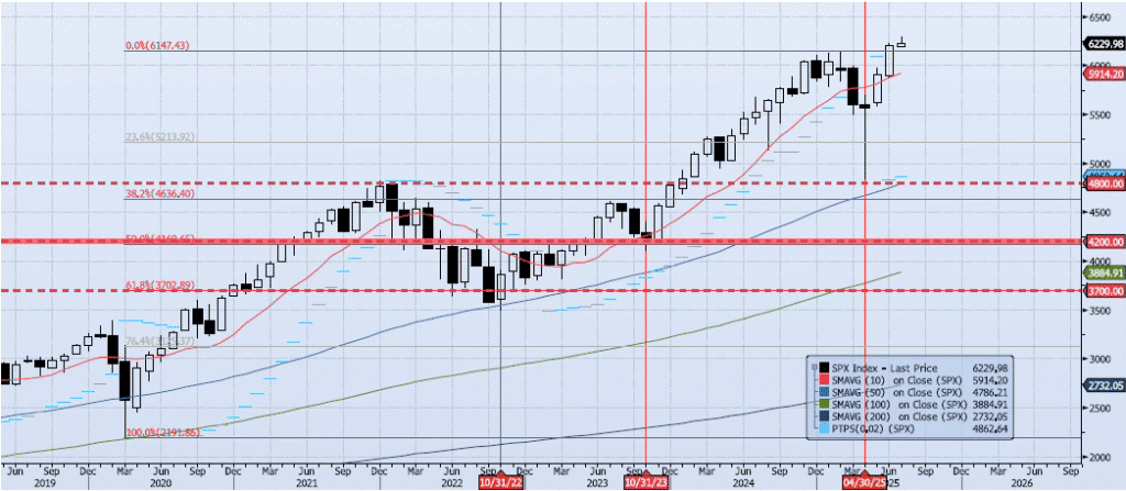 The SPX index lost 79bps on the day yesterday, closing at 6229. The low on the day was 6201, marking a two-day, peak-to-trough move of -1.33%. The hold at 6200 should be noted as a break and close below will signal a near-term shift in trend. As I wrote in yesterday’s note, “While there is some slight negative divergence developing, momentum and trend remain supportive of higher prices. My Spot VIX signal is “neutral”. My VIX Term Structure signal is “risk on”. The ACAP Momentum/Trend Model signal is Positive. I do have some concerns that this leg of the rally is extended but based on the current set up risk remains skewed to the upside.”