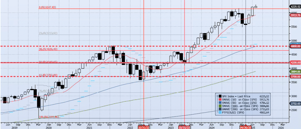 The SPX index lost 7bps during yesterday’s session, closing at 6225. Overall, the loss was minimal. However, every point is valuable as we settle off the recent, all-time high of 6284. As I have been writing over the past few days, there is some slight negative divergence developing. That is continuing in a very gradual and uniform fashion. My momentum and trend indicators are fading slightly. My Spot VIX signal is “neutral”. My VIX Term Structure signal is “risk on”. The ACAP Momentum/Trend Model signal has shifted to Neutral from Positive. Overall, although risk remains skewed to the upside, I have a growing concern that this leg of the rally is extended and losing steam. I would stick to the Neutral signal here and flatten out any long exposure to the index.