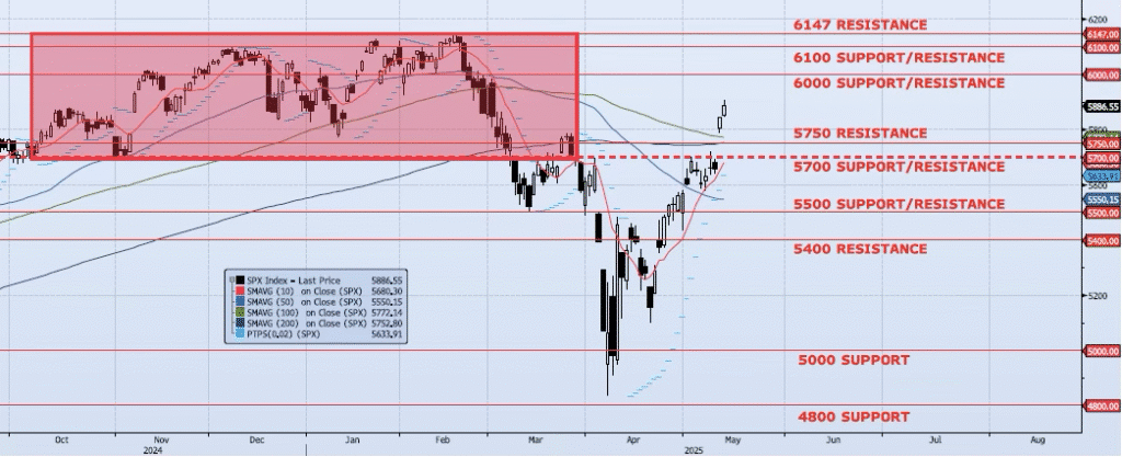 3700: ~Nov 2022 Low and 61.8% Retracement Mar 2020 Low to Feb 2025 High